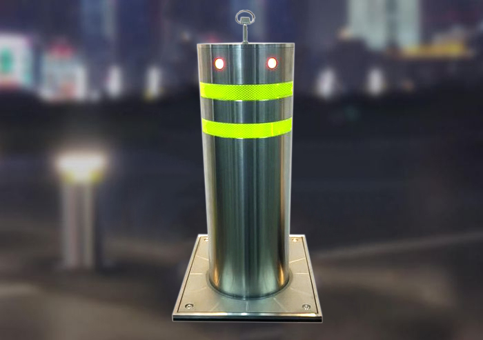 另外,半自动升降柱表面工艺采用抛光拉丝处理,贴3M高强级反光膜,带高亮度LED警示灯。